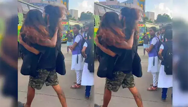 அப்போது பேருந்து நிலையத்திற்கு ஒரு வாலிபரும், இளம்பெண்ணும் அங்கு வந்தனர். திடீரென அந்த வாலிபர், தன்னுடன் வந்த இளம்பெண்ணை தூக்கியபடி நடந்து சென்றார். சிரித்தபடியும், அந்த இளம்பெண்ணை கொஞ்சியபடியும் தூக்கி சென்றார். அதை ஒருவர் வீடியோ பதிவு செய்தார்.