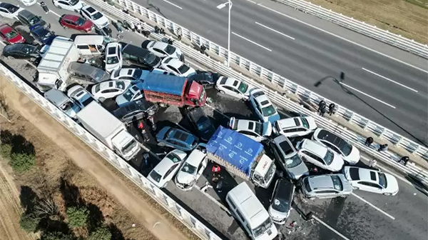 சீனாவில் கடுமையான பாதுகாப்புக் கட்டுப்பாடுகள் இல்லாததால் சாலை விபத்துகள் தொடர் கதையாகி வருகிறது. கடந்த மாதம், மத்திய சீனாவில் மூடுபனியில் குறைந்த தெரிவுநிலை காரணமாக பல வாகனங்கள் நெடுஞ்சாலையில் ஒன்றுடன் ஒன்று மோதிக் கொண்டன.