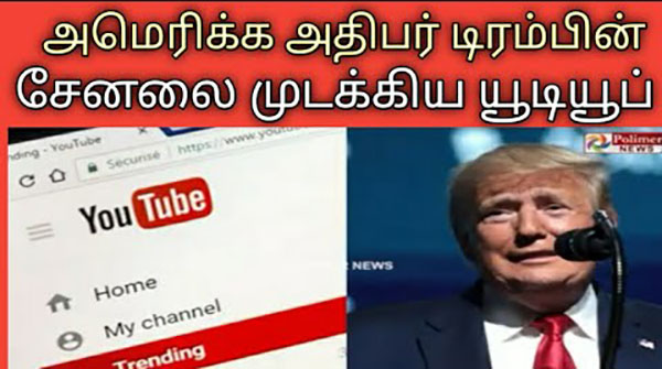 டுவிட்டர், பேஸ்புக் போன்ற சமூக வலைத்தளங்களைத் தொடர்ந்து அமெரிக்க அதிபர் டிரம்பின் சேனலை youtube நிறுவனம் த.ற்.கா.லி.கமாக மு.ட.க்.கி.யு.ள்.ள.து.