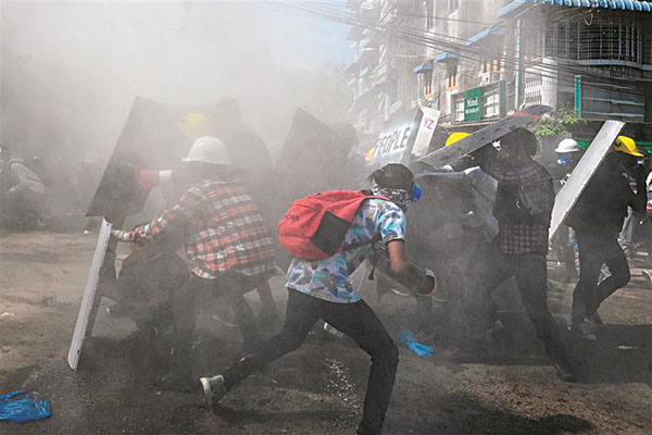 சில நாட்களுக்கு முன், சான் சூச்சி த.லை.மை.யிலான க.ட்.சி.யின் ஆ.ட்.சி.யைக் க.வி.ழ்.த்து, இ.ரா.ணு.வம் ஆ.ட்.சிப் பொ.று.ப்பைக் கை.ப்.ப.ற்.றி.யது.
