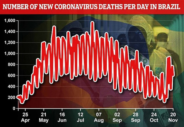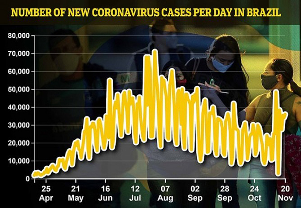 பிரேசிலில், 300 ஆதிவாசி இனங்களைச் சேர்ந்த 800,000 பேர் வா ழ் கிறா ர் கள். மொத்தத்தில், அவர்களில் 39,647 பேர் கொரோனா தொற்றுக்கு ஆ ளா கி யுள் ளா ர்கள், 877 பேர் உ யி ரி ழந் து ள் ளா ர்கள் என பிரேசில் பூர்வக்குடியின மக்களின் கூட்டமைப்பு தெரிவித்துள்ளது.