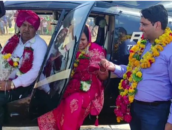 அதன்படி, ஓய்வு பெற்ற தனது தாயை அங்கிருந்து அழைத்து வருவதை கொண்டாடும் விதமாக, ஹெலிகாப்டர் பயணம் ஒன்றை பரிசாக அளித்துள்ளார் மகன் யோகேஷ். தனது தாய் மற்றும் தந்தையுடன் ஹெலிகாப்டரில் வந்து இறங்கிய யோகேஷை, அக்கிராம மக்கள் மாலை அணிவித்து வரவேற்றனர். பொது மக்களின் வரவேற்பை சற்றும் எதிர்பாராத யோகேஷ், தனது தாயின் மகிழ்ச்சியையும் கண்டு பூரித்து போனார்.