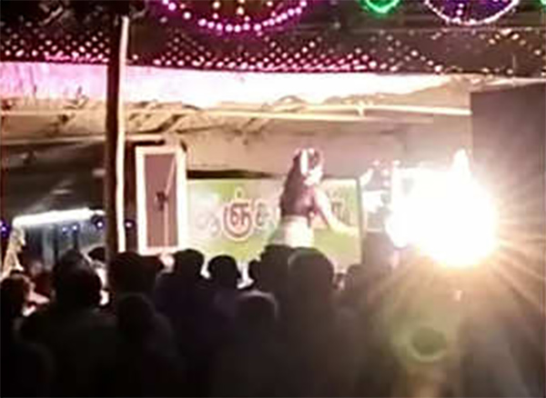 நேற்று இரவு தனியார் விளம்பரதாரர்கள் ஆடலும் பாடலும் நிகழ்ச்சிக்கு ஏற்பாடு செய்திருந்தனர். இரவு 7 மணிக்கு தொடங்கிய கலை நிகழ்ச்சியில் ஆண்களும் பெண்களும் ஆபாச உடை அணிந்து ஆடத் தொடங்கினர்.