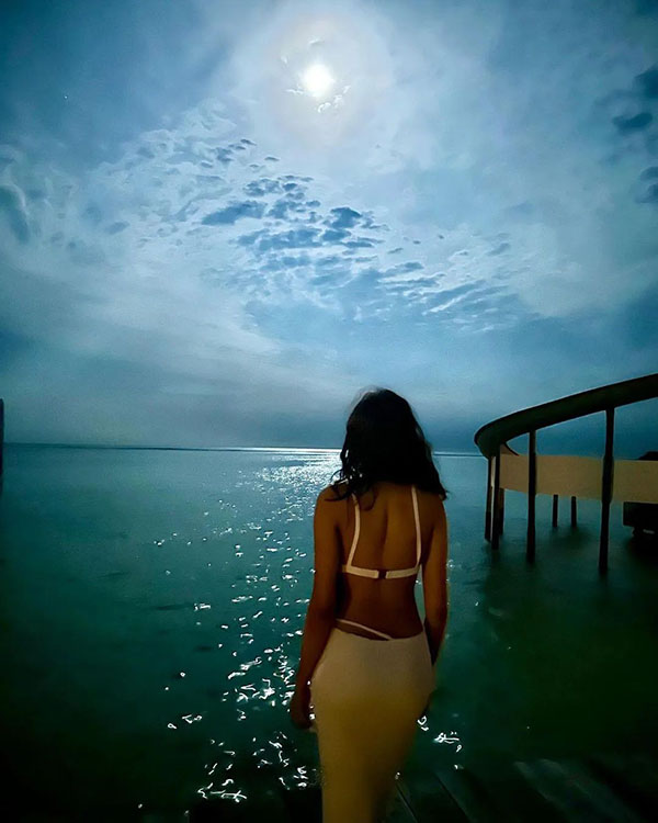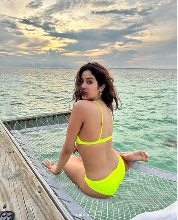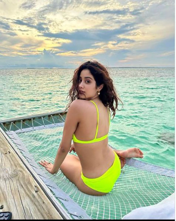 படுகவர்ச்சியான உடைகளை அணிந்து புகைப்படங்களை வெளியிட்டு ரசிகர்களை கவர துவங்கினார். சமீபத்தில் மாலத்தீவுக்கு சுற்றுலா சென்ற ஜான்வி அங்கு அரைகுறை உடையில் கிளுகிளுப்பு காட்டி புகைப்படங்களை வெளியிட்டுள்ளார்.