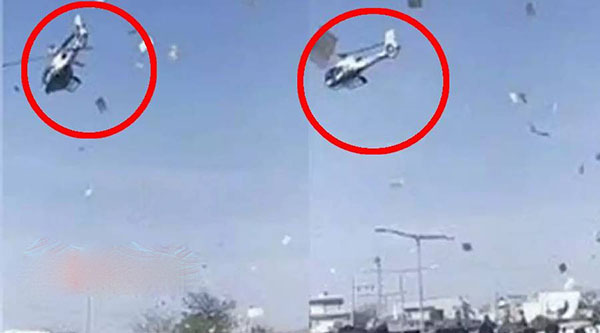 பாகிஸ்தானில் திருமண நிகழ்ச்சி ஒன்றில் ஹெலிகாப்டர் மூலம் பண மழைக்கு ஏற்பாடு செய்யப்பட்டுள்ளது.