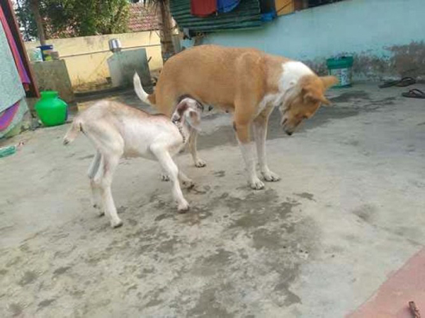 இதுகுறித்து நாய் உரிமையாளரிடம் கேட்டபோது, “குட்டியை ஈன்ற நான்கே நாட்களில் தாய் ஆட்டுக்குட்டி இ ற ந்து விட்டது. அதன் பிறகு நான் வளர்க்கும் நாயிடம், ஆட்டுக்குட்டி தானாக சென்று பால் குடித்தது.