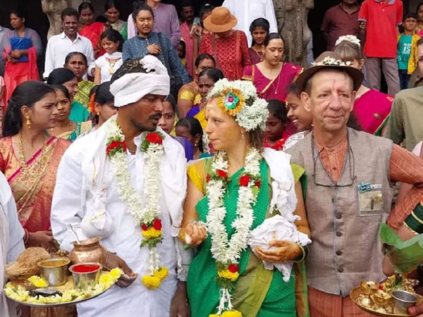இதைத்தொடர்ந்து நேற்று (நவம்பர் 25) இவர்கள் இருவருக்கும் இருவீட்டார் சம்மதத்துடன் கர்நாடக மாநிலம் ஹம்பியில் உள்ள விருபாக்ஷபா கோயிலில் வைத்து திருமணம் நடைபெற்றது. சுற்றுலா வந்த வெளிநாட்டு பயணி இந்தியாவை சேர்ந்த ஆட்டோ ஓட்டுநரை சுமார் 4 ஆண்டுகளாக காதலித்து