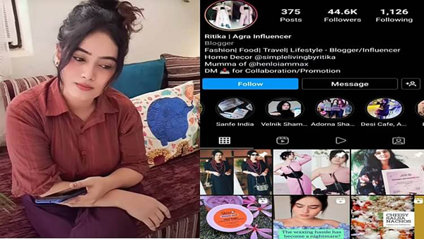 உத்தரப்பிரதேச மாநிலம் தாஜ்கஞ்ச் பகுதியை சேர்ந்த ரித்திகா சிங் என்பவர், கடந்த 2014 ஆம் ஆண்டு ஆகாஷ் கவுதம் என்பவரை திருமணம் செய்தார். சமூக வலைதளத்தில் ஆக்டிவாக செயல்பட்டு வரும் இவர், இன்ஸ்டாகிராம் பக்கத்தில் ஃபேஷன், உணவு, பயணம் குறித்த பதிவுகளை தொடர்ச்சியாக பதிவிட்டு, 44 ஆயிரத்திற்கும் மேற்பட்ட ஃபாலோயர்களைக் கொண்டுள்ளார்.