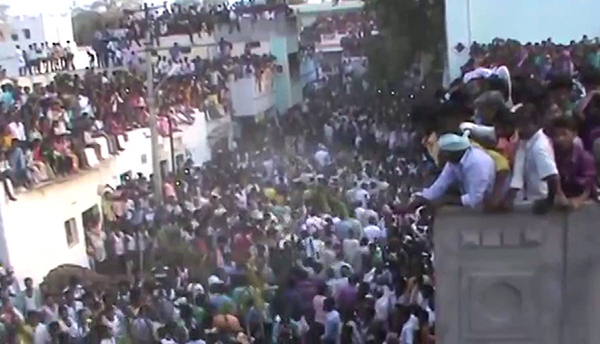 ஆந்திர விழாவில் காற்றில் பறக்க விடப்பட்ட கொரோனா கட்டுப்பாடுகள்..! பக்தர்களின் செய்கையால் ஆந்திராவில் ச ர்ச்சை!!
