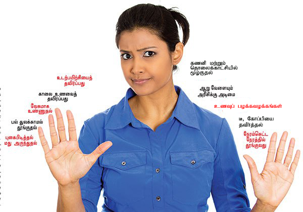 இதுபோல ஆயிரக்கணக்கான பிரச்னைகள் ஒரு சிகரெட் பிடிப்பதால் ஏற்படுகின்றன. அதேபோல், தினசரிக் கட்டுப்பாடு இன்றி மது அருந்துவதால், கல்லீரல், சிறுநீரகம் பாதிக்கப்படும். நோய் எதிர்ப்பு சக்தி குறையும். இதுபோன்ற பிரச்னைகளைத் தவிர்க்க, மது அருந்துவதைக் கைவிடுவது நல்லது.