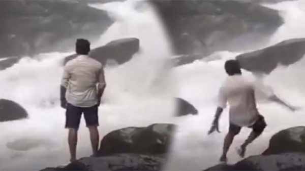 ஆர்ப்பரித்த அருவியை ரசித்த இளைஞர்… நொடியில் நடந்த அதிர்ச்சி சம்பவம்!!