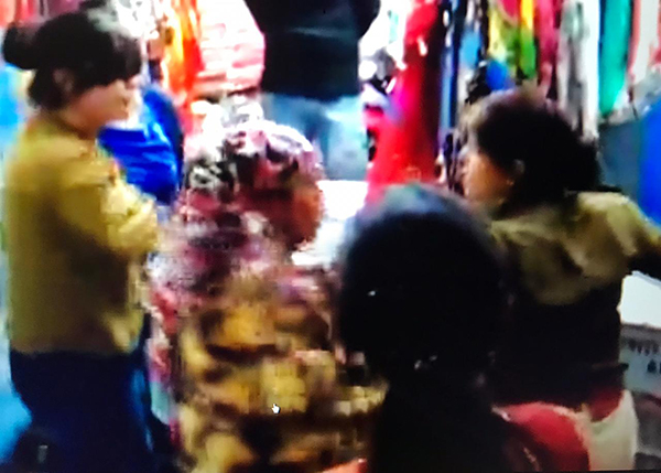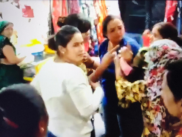ப்ரவுன் நிற உடை அ_ணி_ந்திருக்கும் பெண்மணி, தொடர்ந்து ச_ண்_டைக்கட்ட முயல்கிறார். பெண் போ_லீஸ் இ_டைம_றி_த்து, இந்த ச_ண்_டையை விளக்கிவிட்டுள்ளார். பெண் போலீஸ் வந்த பிறகும் கூட பெண்கள் தொடர்ந்து ச_ண்_டை_யிட்டது தான், இந்த சண்டையின் உட்சபட்ச காட்சியாகும்.
