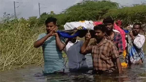 உள்ள குளத்தில் இடுப்பளவு தண்ணீரில் அழகம்மாளின் உடலை சுமந்து சென்று அடக்கம் செய்தனர். விரைவில் சுடுகாட்டிற்கு பாதை அமைத்து தர உடனடி நடவடிக்கை எடுக்க வேண்டும். இறந்தவர்களின் உடலைக் கொண்டு செல்ல முடியாத நிலையை மாற்ற தக்க நடவடிக்கை எடுக்க வேண்டும் என அந்த மக்கள் கோரிக்கை விடுத்துள்ளனர்.