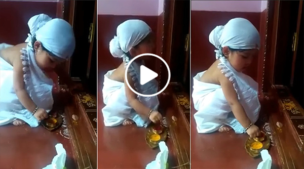 இங்கே ஒரு பிஞ்சுக்குழந்தையின் செயலும் அப்படித்தான் நம்மை வெகுவாக ஈர்க்கிறது. வீட்டு பூஜையறையில் இருந்து தன் தாய்க்கு உதவியாக அந்த பிஞ்சுக்குழந்தை தலையில் துணியும் கட்டிக்கொண்டு வாசலில் விபூதி, குங்குமத்தை தேய்ப்பதை வேற லெவல் என்றே சொல்லலாம். இதோ நீங்களே இந்த வீடியோவைப் பாருங்கள். உங்களையும் அறியாமல் மெய்சிலிர்த்துப் போவீர்கள்.