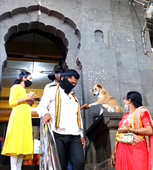 மகாராஷ்டிராவில் கோவிலுக்கு வழிபட வரும் பக்தர்களை, நாய் ஒன்று கைகொடுத்து ஆசிர்வாதம் வழங்கிவரும் வீடியோ இணையத்தில் வைரலாகிவருகிறது. இந்திய மாநிலம் மகாராஷ்டிராவில், அகமத்நகர் மாவட்டத்தில் சித்தி விநாயகர் கோயில் உள்ளது.