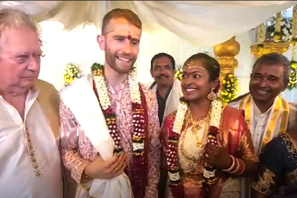 பிரித்தானியாவின் சேர்ந்த பென் மற்றும் லக்ஷெட்டிபேட்டையைச் சேர்ந்த சிந்துரா ஆகியோரின் திருமணத்தில் மணமகனின் பெற்றோர் மற்றும் நெருங்கிய உறவினர்கள் கலந்து கொண்டு புதுமணத் தம்பதிகளை ஆசிர்வதித்தனர்.