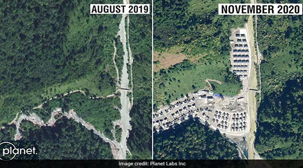 இந்நிலையில் அருணாச்சல பிரதேச எல்லையில்.5 கி.மீ. தொலைவில் புதிய கிராமத்தை சீனா உ ரு வா க்கி யுள்ளது. இது தொடர்பான செ ய ற் கைக் கோள் புகைப்படம் இப்போது வெளியாகியுள்ளது.