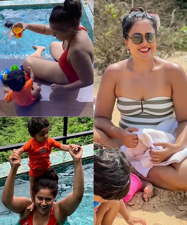சமீரா ரெட்டி தனது சமூக வலைத்தள பக்கத்தில் அடிக்கடி புகைப்படங்கள் மற்றும் வீடியோக்களை வெளியிட்டு வருவார். தற்போது தன் கணவர், குழந்தைகளுடன் பீச்சில் நீச்சல் உடையில் இருக்கும் புகைப்படத்தை வெளியிட்டு இருக்கிறார்.