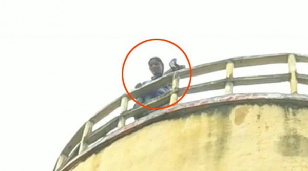 இதனால் அதிர்ச்சியடைந்த பொலிசார் அவரை சமாதானம் செய்து கீழே இறக்கினார்கள்,