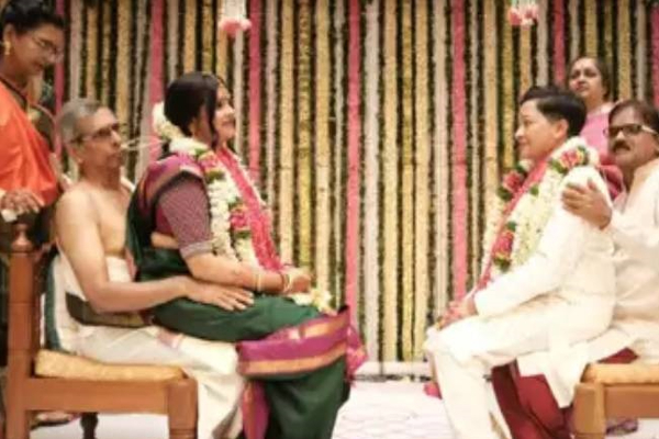 கனடாவில் வசிக்கும் தமிழ்ப்பெண், வங்கதேசத்தை சேர்ந்த பெண்ணை குடும்பத்தார் சம்மதத்துடன் பாரம்பரிய முறையில் சென்னையில் திருமணம் செய்து கொண்டுள்ளார்.