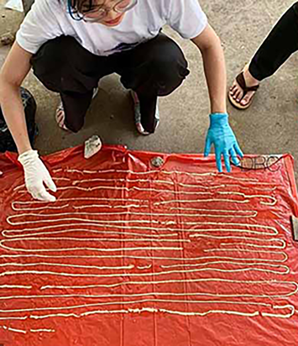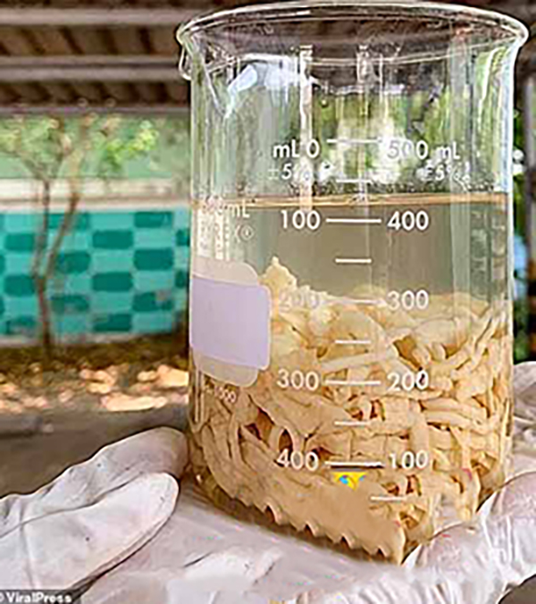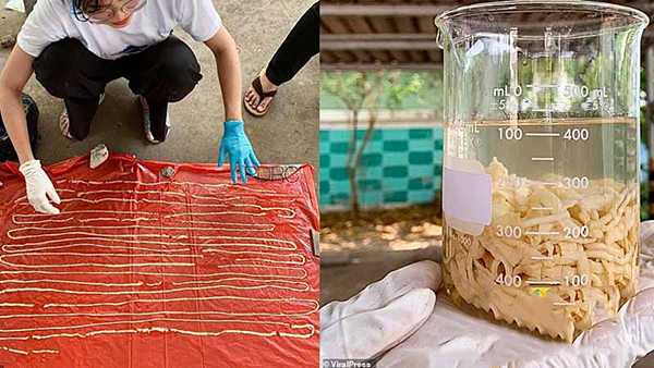 பின்னர், வெளியான புழுவின் முழு நீளத்தை கண்டு மருத்துவர்கள் திகைத்தனர். அந்த புழு 18 மீட்டர் நீளமுள்ள டேனியா சாகினாட்டா போவின் என்ற நாடாப்புழுவின் இனத்தை சேர்ந்தது என்று ஒட்டுண்ணி நோய் ஆராய்ச்சி மையத்தின் செய்தி தொடர்பாளர் தெரிவித்தார்.