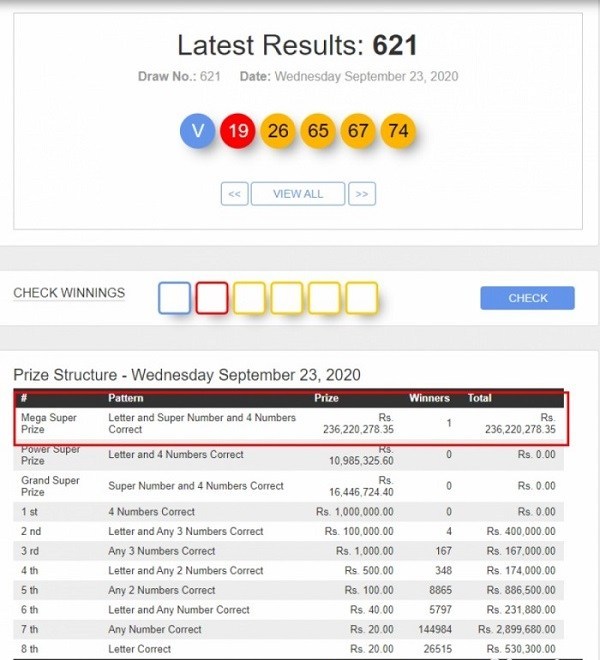 கண்டியை சேர்ந்த நபர் ஒருவரே சீட்டிழுப்பில் வெற்றி பெற்றுள்ளதாக தேசிய லொத்தர் சபை தெரிவித்துள்ளது.