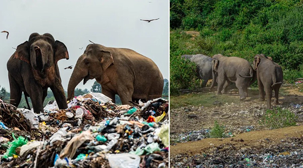 இலங்கையில் குப்பைகளில் தேங்கிக் கிடக்கும் உணவை தேடும் காட்டு யானைகள்! நெஞ்சை உருக்கும் புகைப்படங்கள்!!
