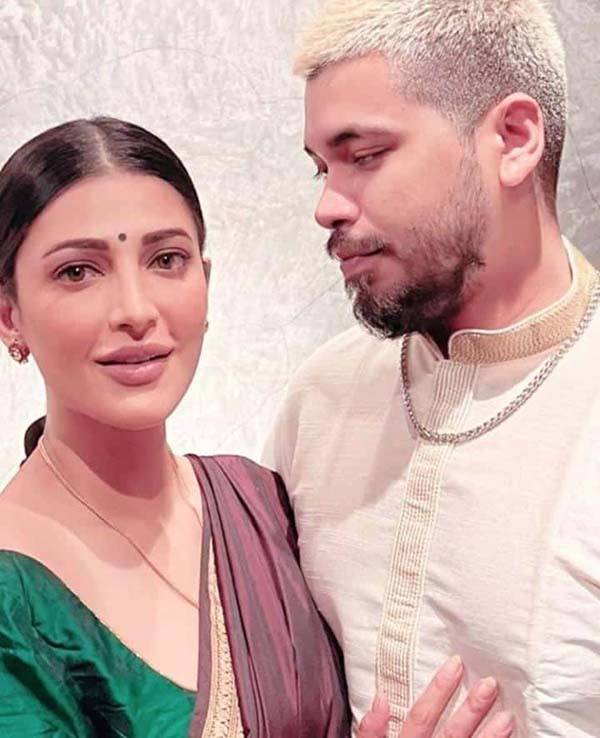 சோஷியல் மீடியாவில் இவருக்கு அதிகப்படியான ரசிகர்கள் பட்டாளமும் உள்ளது. இந்நிலையில், தனது பாய் பிரண்ட்டுடன் சேலை அணிந்து முத்தங்களுடன் புகைப்படங்களை பகிர்ந்துள்ள ஸ்ருதிஹாசன் இளசுகளை சூடேற்றி விட்டுள்ளார்.