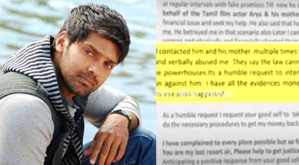 இந்நிலையில், ஜேர்மனியில் இருக்கும் சுகாதாரத்துறையில் பணிபுரியும் ஈழத்தமிழ் பெண் விட்ஜாவிடம், 3 வருடங்களாக பழகிய நிலையில் விட்ஜாவுக்கு ஆன்லைன் மூலம் காதல்வலை விரித்த நடிகர் ஆர்யா அவரை காதலிப்பது போல நடித்து திருமணம் செய்து கொள்வதாக ஆசைவார்த்தை கூறி 70 லட்சத்து 40,000 ரூபாய்யை வெஸ்டர்ன் யூனியன் மணிடிரான்ஸ்பர் மூலம் ஆர்யா பெற்றுக் கொண்டுள்ளார்.