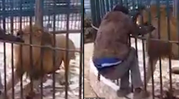 ஆப்பிரிக்க நாடு ஒன்றில் உயிரியல் பூங்கா ஒன்றிற்கு வந்திருந்த பார்வையாளர்களை கவர்வதற்காக ஊழியர் ஒருவர் கூண்டுக்குள் இருந்த சிங்கத்தை தட்டிக் கொடுத்தபோது நிகழ்ந்த சம்பவம் பார்வையாளர்களை அலறச் செய்தது.
