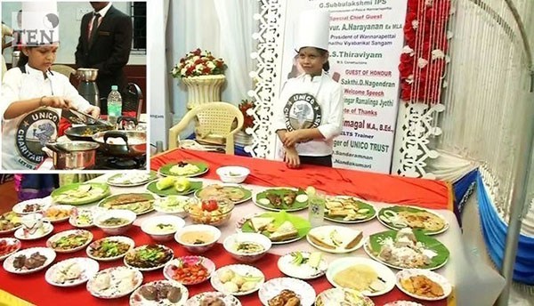 சென்னை பழைய வண்ணாரப் பேட்டையைச் சேர்ந்த சிறுமி ஒருவர் ஒரு மணிநேரத்தில் 45 வகையான உணவுகளை சமைத்து யூனிகோ உலக சாதனையை படைத்துள்ளார்.