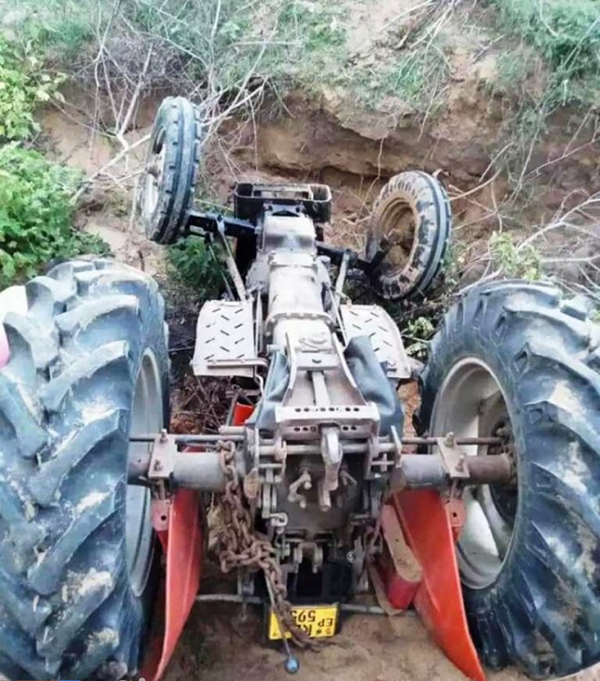 அச்சந்தர்ப்பத்தில் இவர் உழவு இயந்திரத்தின் கீழே நசுங்குண்டு படுகாயமடைந்துள்ளார்.