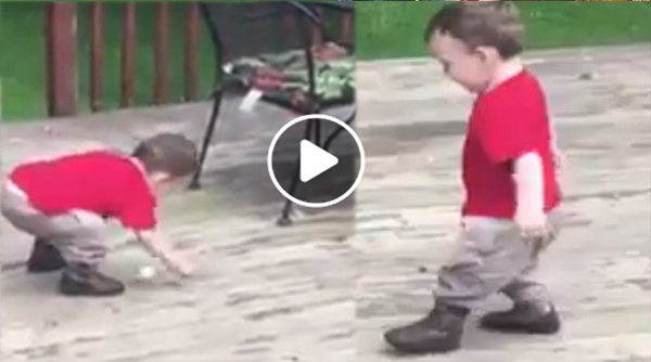 குறித்த குழந்தை பிளாஸ்டிக் டப்பா ஒன்றில் இரண்டு பந்து வைத்திருக்கிறது. அது ஒன்று மாற்றி ஒன்று கீழே விழ சலிக்காமல் எடுத்து வைத்த குழந்தை ஒரு தருணத்தில் க.டு.ப்பாகியுள்ளது.