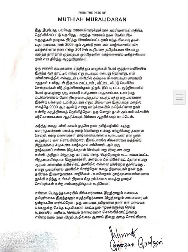 இ ந்நிலையில் இந்த க டு ம் எ திர் ப்பு மற்றும் பல ச ர்ச்சைகள் கு றித்து முதன் முறையாக தனது வி ளக்கத்தை முன் வை த்துள்ளார் கிரிக்கெட் வீரர் முத்தையா முரளிதரன்.