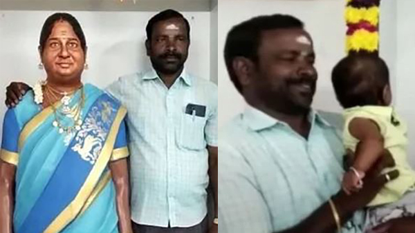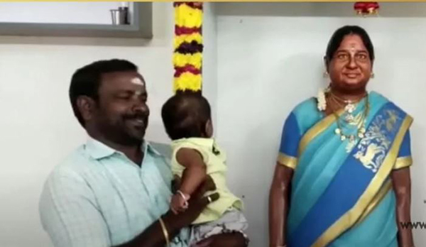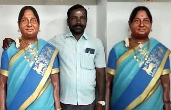மேலும் இதற்காக சென்னையை சேர்ந்த சிலை தயாரிக்கும் நிறுவனம் ஒன்றின் உதவியுடன் மனைவியின் உருவ சிலையையும் இருசன் உருவாக்கி உள்ளார்.