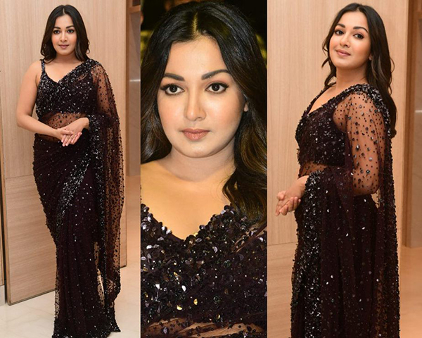 Actress Catherine Tresa Black Saree Pics @ Bhala Thandanana Pre-Release
