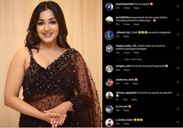 அதனை கண்ட ரசிகர்கள் பலரும் அதிர்ச்சி அடைந்தனர். காரணம் போட்டோவில் அவர் உடல் எடை அதிகரித்து காணப்பட்டது தான். பலரும் உங்களுக்கு என்ன ஆச்சு? ஏன் இப்படி ஆகிட்டீங்க? என கேள்வி எழுப்பி வருகிறார்கள். சிலர் ஒரு டைம்ல சிக்ஸ் பேக் வச்சிருந்த ஹீரோயின என்னடா பண்ணி வச்சிருக்கீங்க என கமெண்ட் செய்து வருகிறார்கள்.