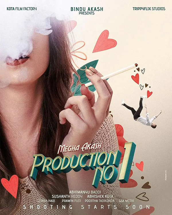 இந்த படத்தை மேகா ஆகாஷின் தாய் பிந்து ஆகாஷ் அவரது சொந்த தயாரிப்பு நிறுவனம் மூலம் தயாரித்துள்ளார் என்பது குறிப்பிடத்தக்கது. இந்த படத்தின் பர்ஸ்ட் லுக் போஸ்டரில் மேகா ஆகாஷ் சிகரெட் பிடிப்பது போன்ற புகைப்படம் இடம் பெற்றுள்ளது. இதனால் இதை கண்ட ரசிகர்கள் அதிர்ச்சி அடைந்துள்ளனர்.