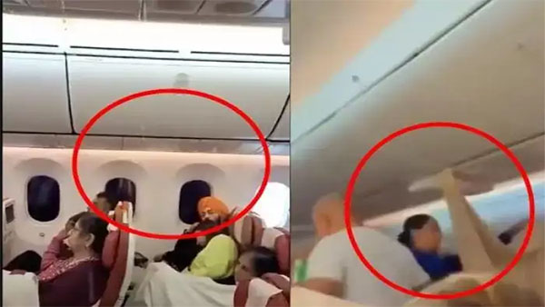 ஏர் இந்தியா போயிங் பி787 ட்ரீம்லைனர் ரக விமானத்தின் மேல்நிலை சேமிப்புப் பகுதியில் இருந்து, பயணிகள் அமர்ந்திருக்கும் கேபினுக்குள் மழைத்தண்ணீர் கசிந்து கொட்டத் துவங்கியது. பயணிகள் கலவரத்துடன் பரிதாபமாக அமர்ந்திருக்க,