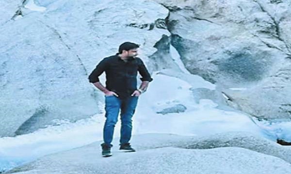 அப்போது அங்குள்ள பனிமலையின் மீது ஏறி சாகசம் மேற்கொண்டுள்ளார். ஐஸ்கட்டியாக உறைந்து காணப்பட்ட சந்திரா ஆற்றங்கரையில் நின்று நிகில் குமார் போட்டோ எடுத்துக் கொண்டிருந்தார்.