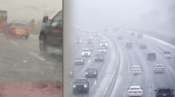 வெளியாகியுள்ள மற்றொரு வீடியோவில் சாலையில் வாகனங்கள் செல்ல, வானிலிருந்து ஆலங்கட்டி மழை பெய்ய அதனூடே வாகனங்கள் செல்வதையும் காணமுடிகிறது.