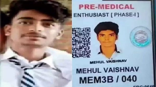 கோட்டாவில் தங்கி, தனியார் பயிற்சி நிறுவனத்தில் நீட் தேர்வுக்கு தயாராகி வந்தார். விக்யான் நகர் சிஐ தேவேஷ் பரத்வாஜ் கூறுகையில், உதய்பூரில் உள்ள சலூம்பாரில் வசிக்கும் மாணவர் விடுதியில் தற்கொலை செய்து கொண்டதாக செவ்வாய்க்கிழமை காலை தகவல் வந்தது. இரவு 10 மணி வரை விடுதியில் இருந்த அனைத்து மாணவர்களும் மெகுல் வைஷ்ணவை பார்த்தனர். ஆனால், காலை 11 மணி வரை அறையை விட்டு வெளியே வராத அவர், அறைக்குள் சென்று பார்த்தபோது மின்விசிறியில் தூக்கில் தொங்கிய நிலையில் பிணமாக கிடந்தார்.