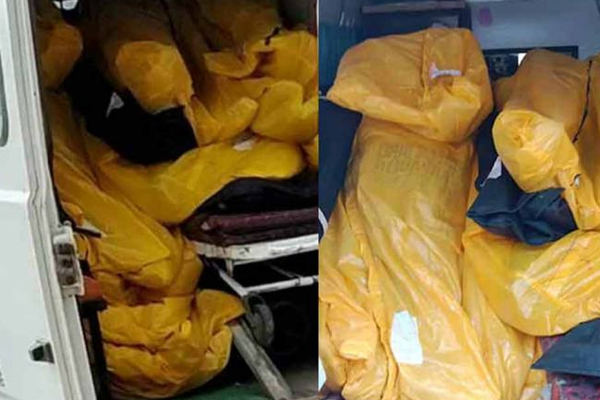 அ.ர.சு ம.ரு.த்துவமனை ஒன்றில் இ.ற.ந்த 22 பே.ர்.களின் ச.ட.ல.ங்களை ஓரோ பிளாஸ்டிக் பைகளில் நிரப்பி, ஒரே ஒரு ஆம்புலன்சில் எ.ரி.யூ.ட்ட கொண்டு செல்லும் காட்சி, நெஞ்சை உ.லு.க்.குவதாக உள்ளது.