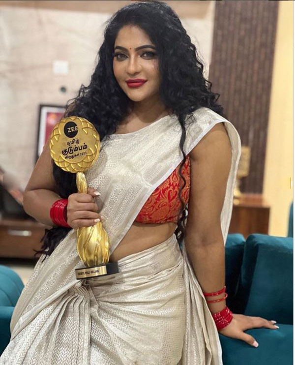 மேலும், ஒருபக்கம் ஜீ தமிழிலும் சீரியலில் நடித்து வருகிறார். அந்தவகையில் அந்த தொலைக்காட்டியில் ஒளிபரப்பாகும் சீரியல்களில் சிறந்த வில்லியான ரேஷ்மா தேர்ந்தெடுக்கப்பட்டு விருதும் வழங்கப்பட்டுள்ளது.