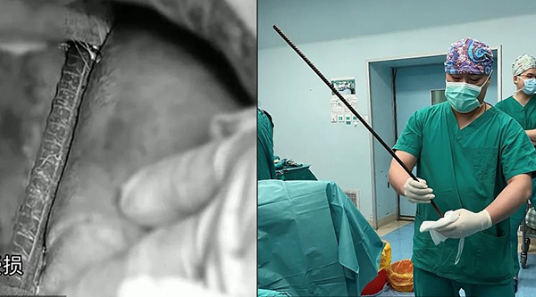 சீனாவில் கட்டுமானப்பணியின்போது 10 அடி உயரத்திலிருந்து தவறி விழுந்த ஒரு பெண்ணின் உடலுக்குள் கம்பி ஒன்று நுழைந்தது.