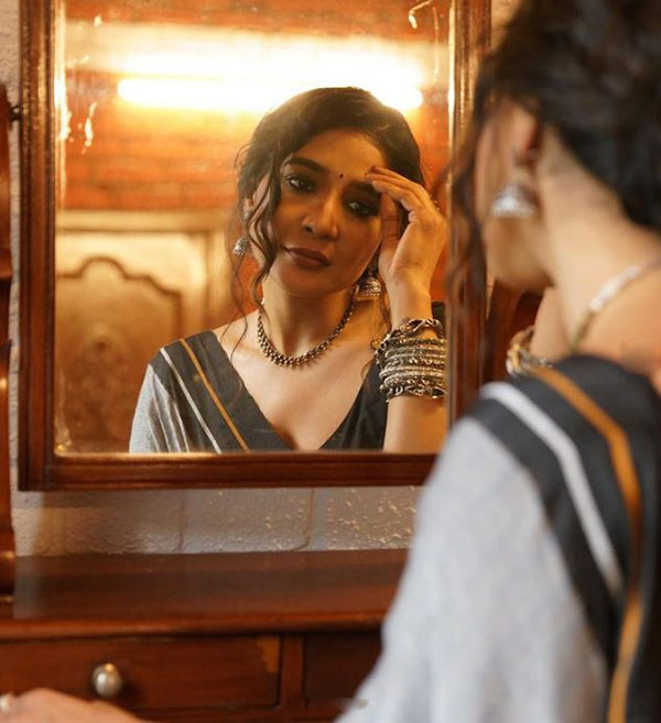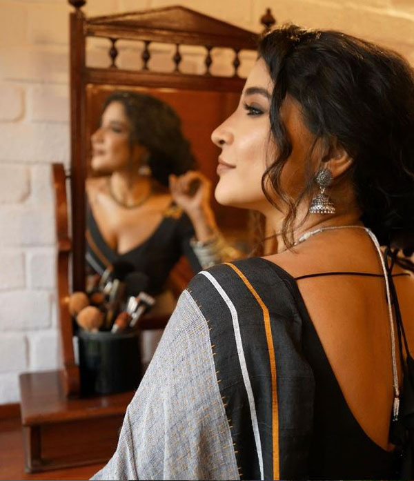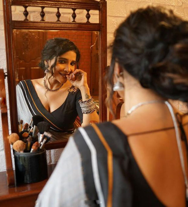 கண்ணாடி முன் சேலையில் கவர்ச்சி போஸ் கொடுத்த சாக்ஷி அகர்வாலின் நச் புகைப்படங்கள்!!