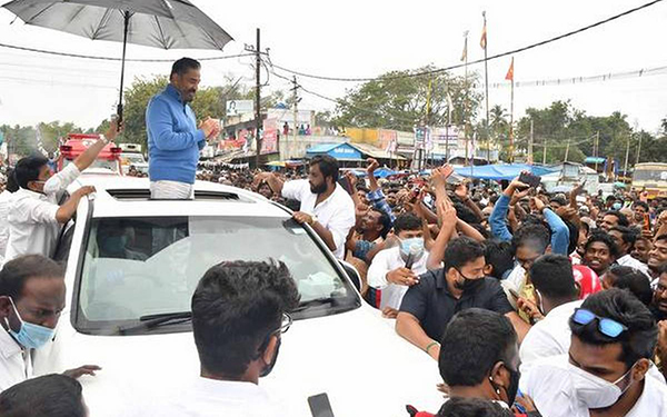 காஞ்சிபுரத்தில் மக்கள் நீதி மய்ய கட்சி தலைவர் கமல்ஹாசன் நேற்று பி.ர.ச்.சாரம் மே ற்கொண்டார். காந்தி ரோடு பெரியார் தூண் அருகில் பி ரசாரத்தில் ஈடுபட்ட கமல்ஹாசன் பி.ர.ச்.சா.ரம் முடிந்த பின்னர் தன் சொ குசு காரில் கி ளம்பி உள்ளார்.