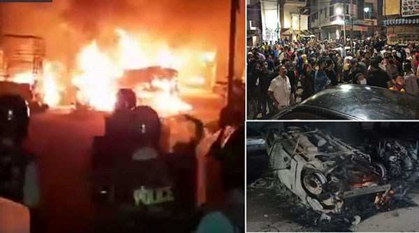 சில நிமிடங்களுக்குப் பிறகு, போராட்டத்தில் ஈடுபட்ட கும்பல் கே.ஜி.ஹல்லி காவல் நிலையம் மற்றும் டி.ஜே.ஹல்லி காவல் நிலையத்திற்கு சென்று அப்பகுதியை சூறையாடி, பொலிஸ்காரர்கள் மீது கற்களை வீசி, கார்களை எரித்தது.