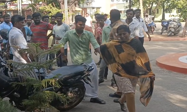 இதையடுத்து பணியில் இருந்த காவலர்கள், இருவரையும் அமர வைத்து விவரங்களைக் கேட்டுக் கொண்டிருந்தபோது, காவல்நிலையத்துக்கு வெளியே திடீரென 25-க்கும் மேற்பட்டோர் வாக்குவாதத்தில் ஈடுபட்டுக் கொண்டிருந்தனர்.