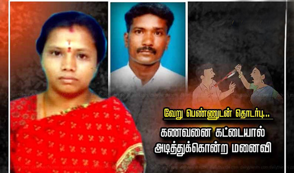 தொடர்ந்து நாச்சியார் மீது கொலை வழக்கை பதிவு செய்து அவரை கைது செய்து விசாரணை நடத்தி வருகின்றனர். கணவனை மனைவி கட்டையால் அடித்து கொலை செய்த சம்பவம் அந்த பகுதியில் பெரும் பரபரப்பை ஏற்படுத்தி உள்ளது.
